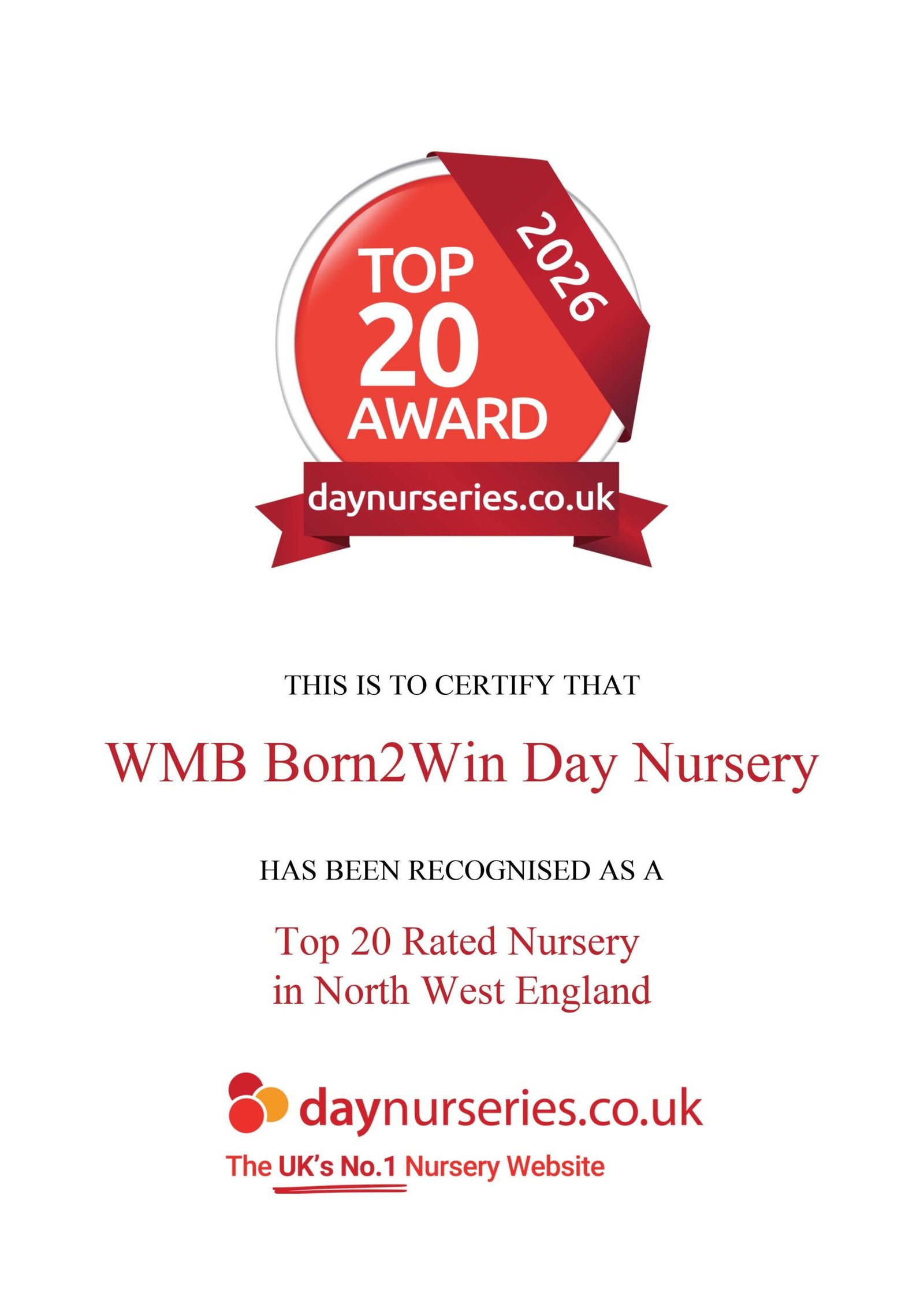 have each been awarded Top 20 Rated Nursery status for North West EnglandThat’s four awards. One shared standard of excellence.